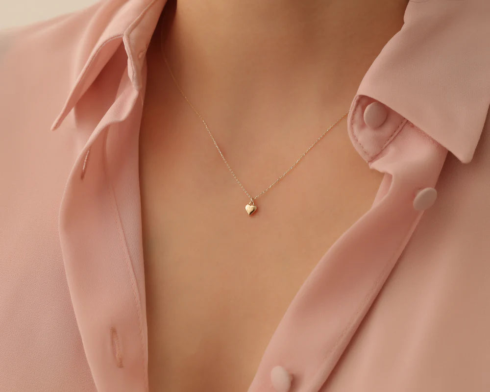14K SOLID GOLD DAINTY HEART NECKLACE, MINIMALIST DESIGN SACRED HEART NECKLACE, TINY GIFT FOR WOMEN