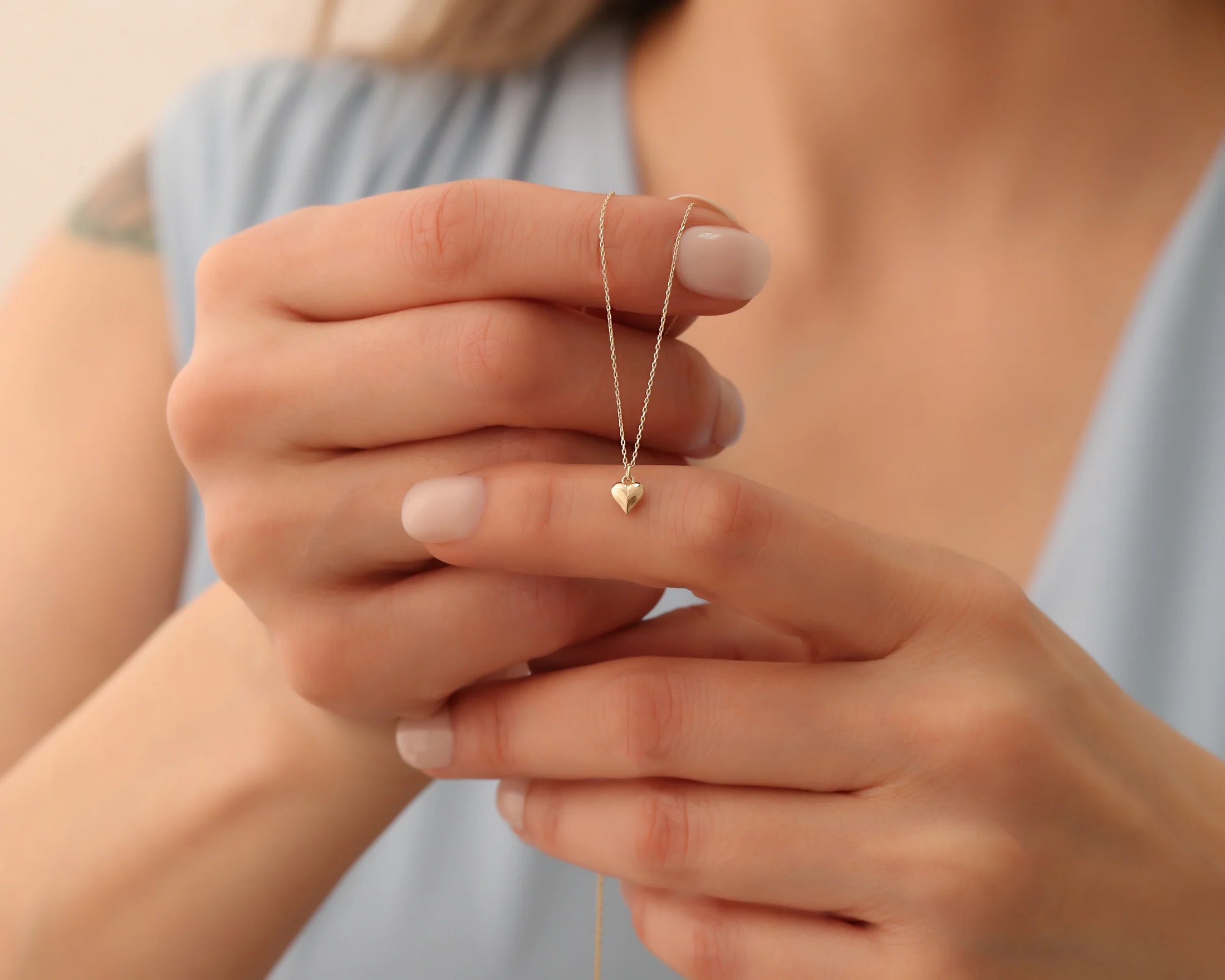 14K SOLID GOLD DAINTY HEART NECKLACE, MINIMALIST DESIGN SACRED HEART NECKLACE, TINY GIFT FOR WOMEN