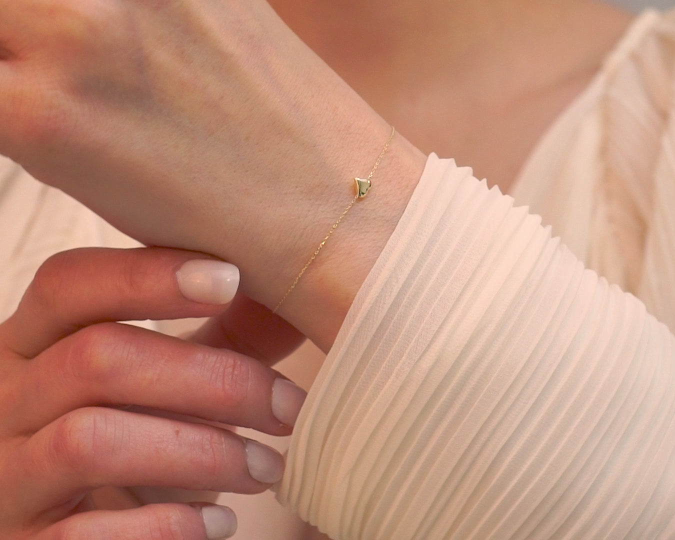 DAINTY TINY HEART BRACELET, MINIMAL HEART BRACELET, 14K SOLID GOLD TINY HEART BRACELET
