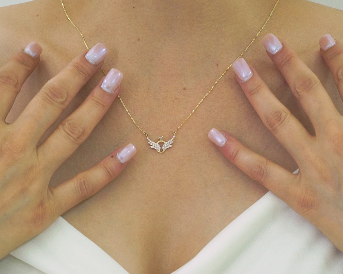 14K Solid Gold Angel Wing Necklace