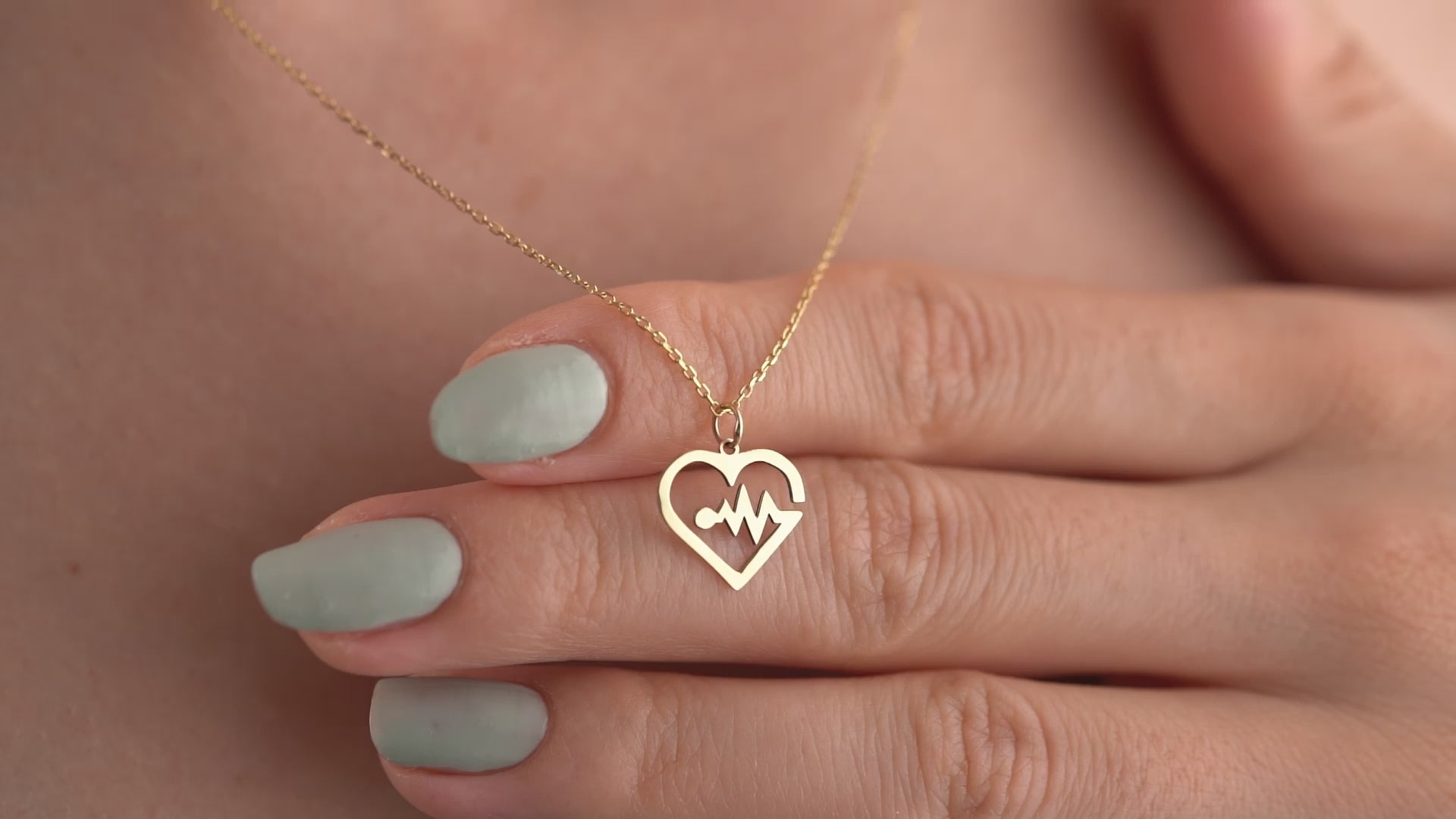 14K Solid Gold Heartbeat EKG Pendant Necklace