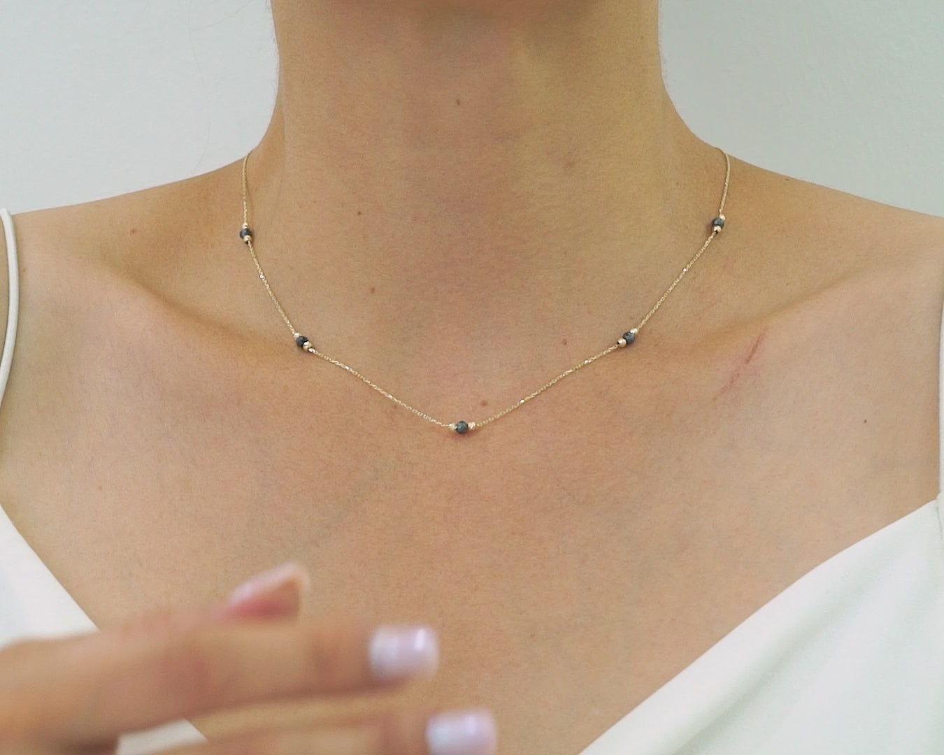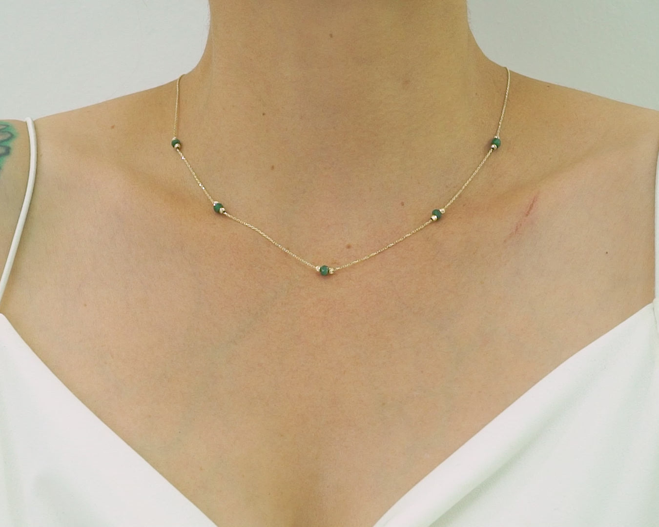 Bring a touch of elegance to your everyday look with this handcrafted 14K Solid Gold Beaded Necklace. Featuring delicate beads in your choice of color, this versatile necklace offers both style and comfort, perfect for any occasion.