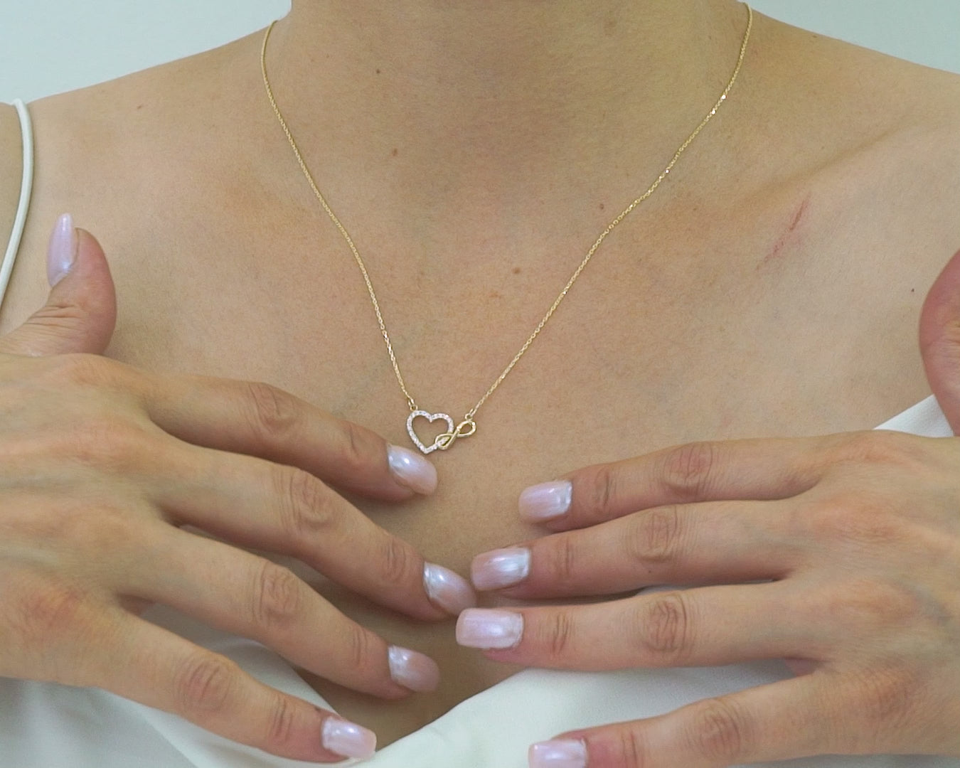 Celebrate timeless love and commitment with our 14K Solid Gold Heart & Infinity Necklace. This stunning piece features a sparkling heart intertwined with an infinity symbol, symbolizing eternal love and connection. Handcrafted with precision, the heart is encrusted with high-quality cubic zirconia stones, offering a dazzling look that complements any outfit. Want to know more about our Infinity Necklace?