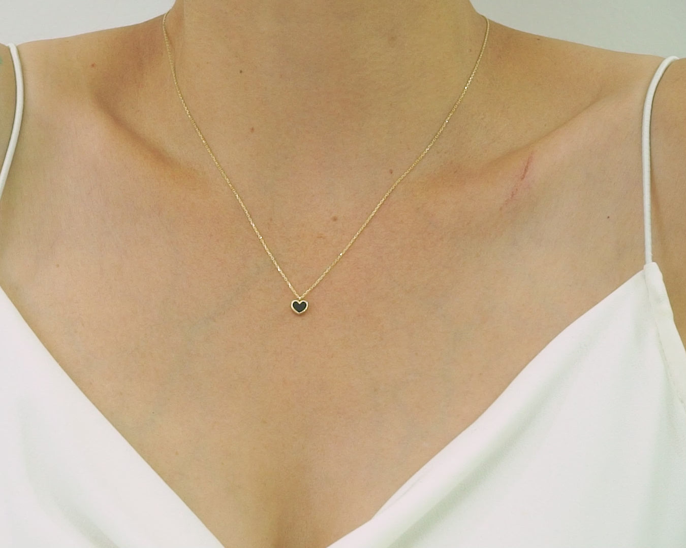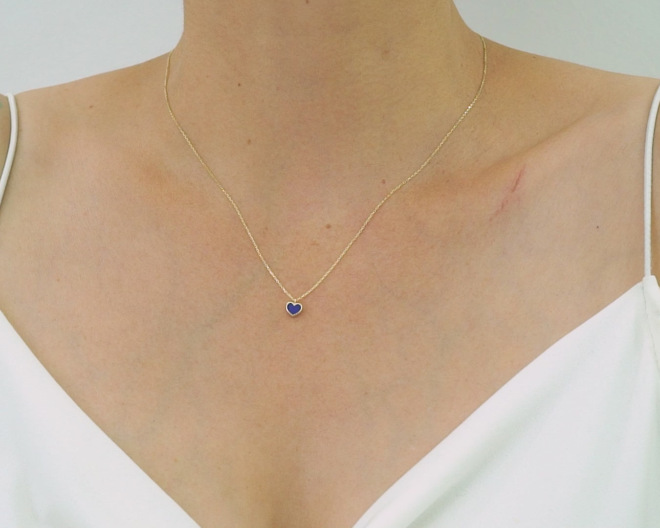 - A dainty, everyday necklace featuring a charming enamel heart pendant. Available in classic blue, white, or black, this elegant piece is perfect for layering or wearing alone for a subtle statement. Crafted with a 14k gold-plated chain, this necklace blends simplicity with sophistication, making it a must-have in any jewelry collection. Whether gifting for a loved one or treating yourself, this necklace will quickly become your go-to accessory.